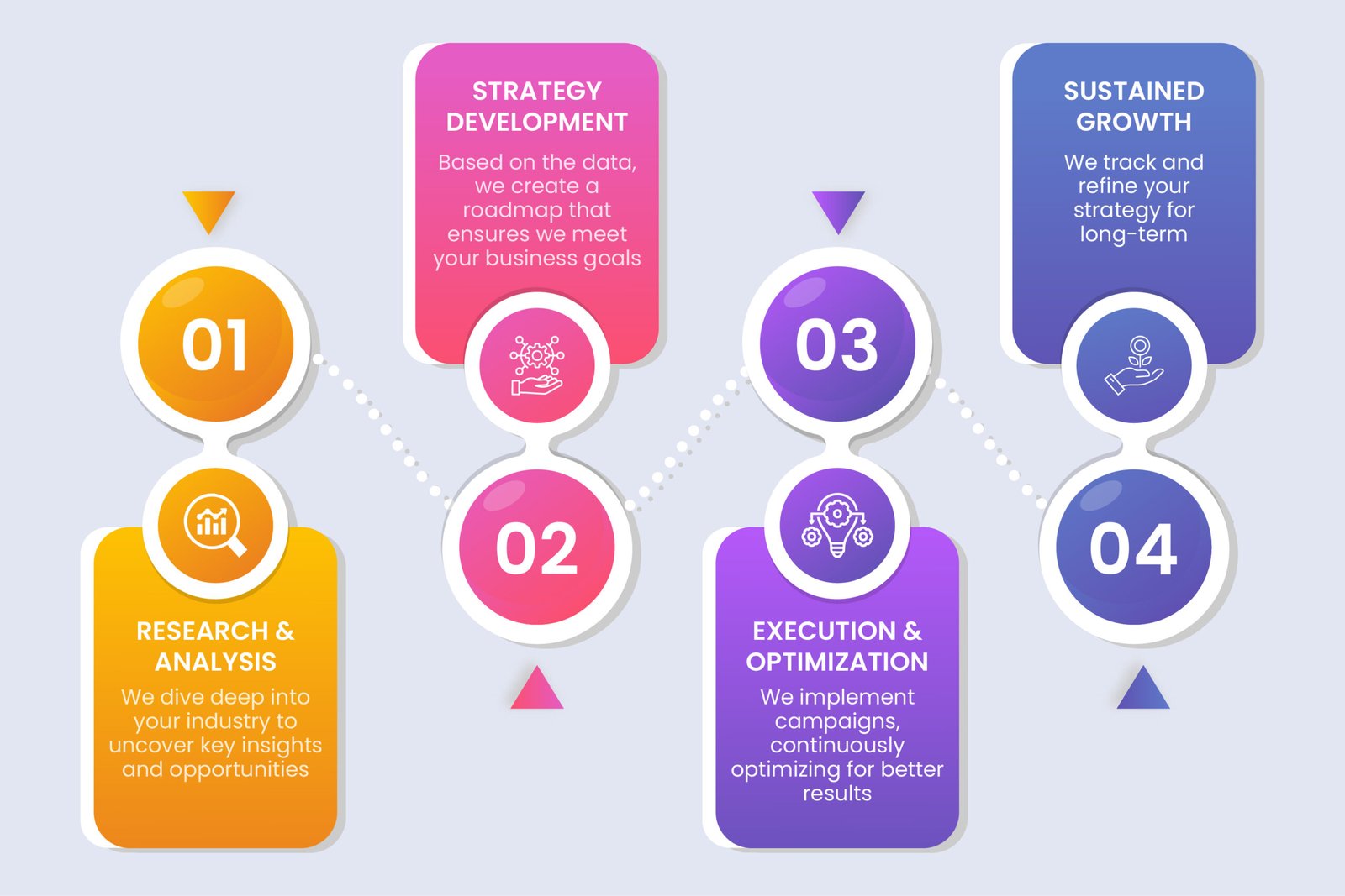 As a trusted digital marketing company, we craft tailored strategies by analyzing your audience, competitors, and market trends. Our goal is to execute, optimize, and deliver impactful results that elevate your brand.
